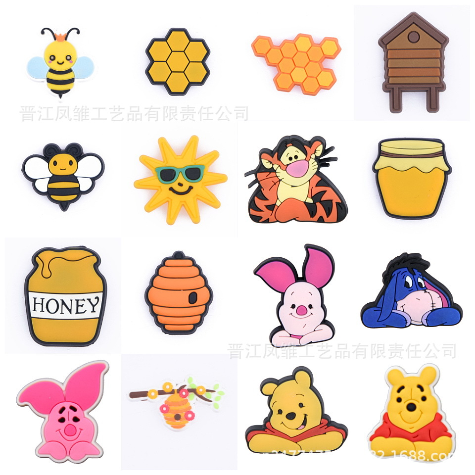 蜂熊維尼熊靴花洞靴アクセサリーcroc靴バックルdiyアクセサリーpvcソフトゴム取り外し可能
