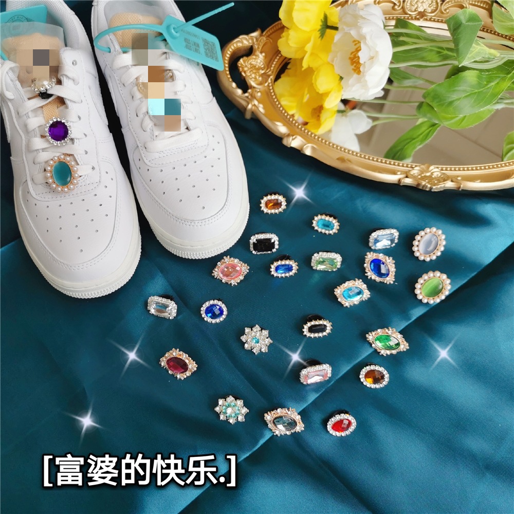 白い靴の新しい宝石の靴のボタンのレトロな装飾の靴のひもの装飾のペンダントのダイヤモンドの部品の靴の花の祖母の緑の真珠の靴
