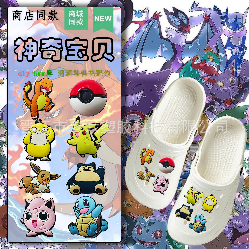 クロスボーダー洞靴花靴バックルpvcソフトゴム部品5mm厚さポケモン3d立体croc靴バックル