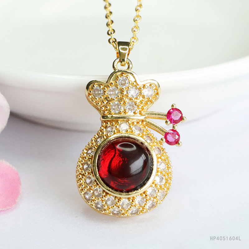 钰天然琥珀ペンダント血パー銭袋ネックレス古風宝飾工場卸売り代発HP4051604L