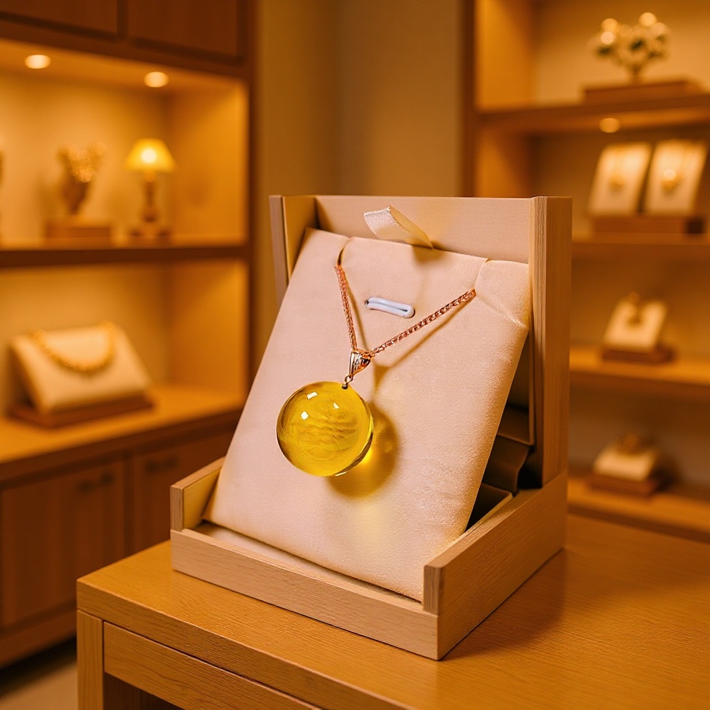 雲鼎宝飾品の純正品18k黄金蜜ろうネックレス8mm琥珀正円無暇女性鎖骨鎖送証明書
