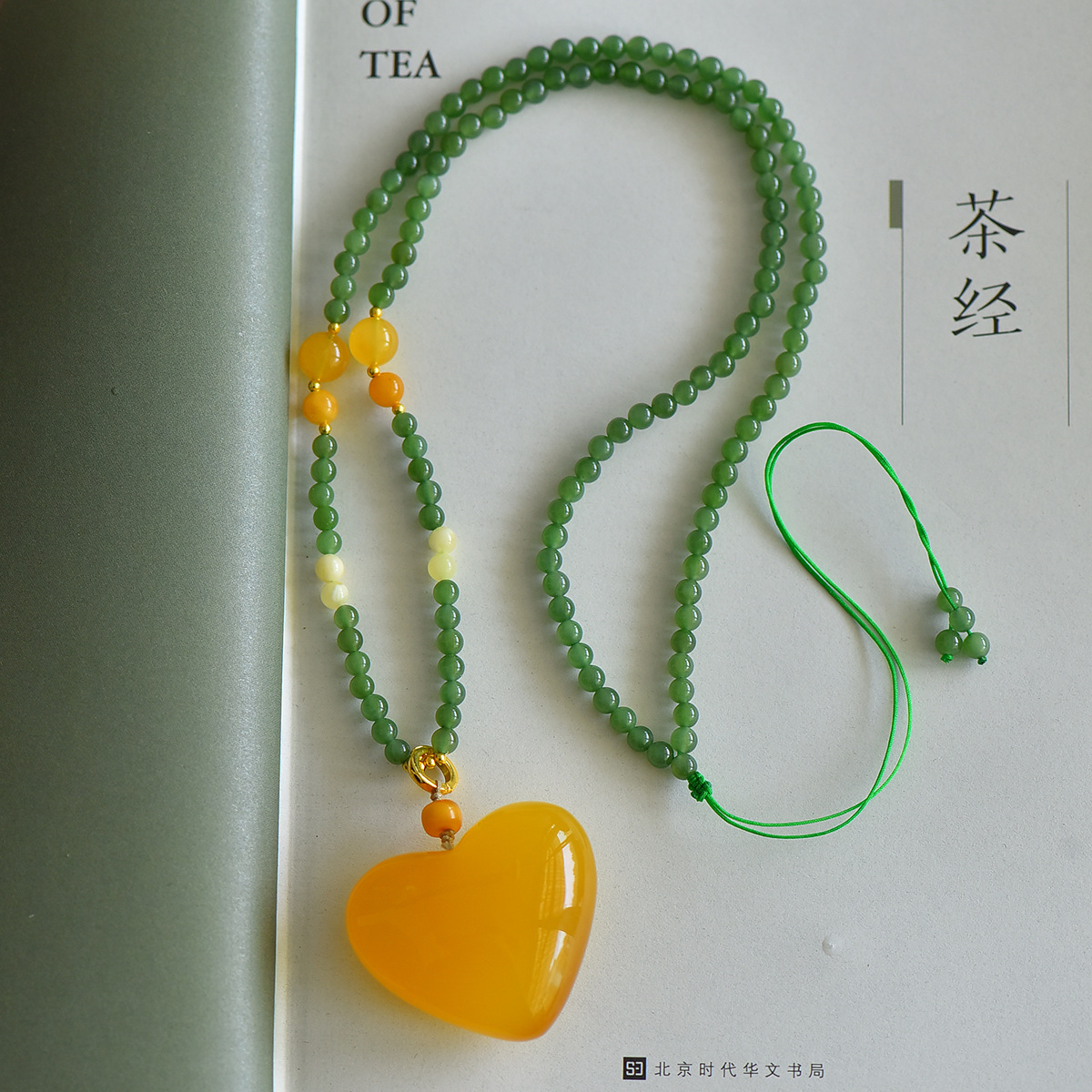 天然鶏油黄色蜜蝋ラブペンダントネックレス鶏油黄色蜜蝋ラブセーターチェーン蜜蝋ネックレス卸売