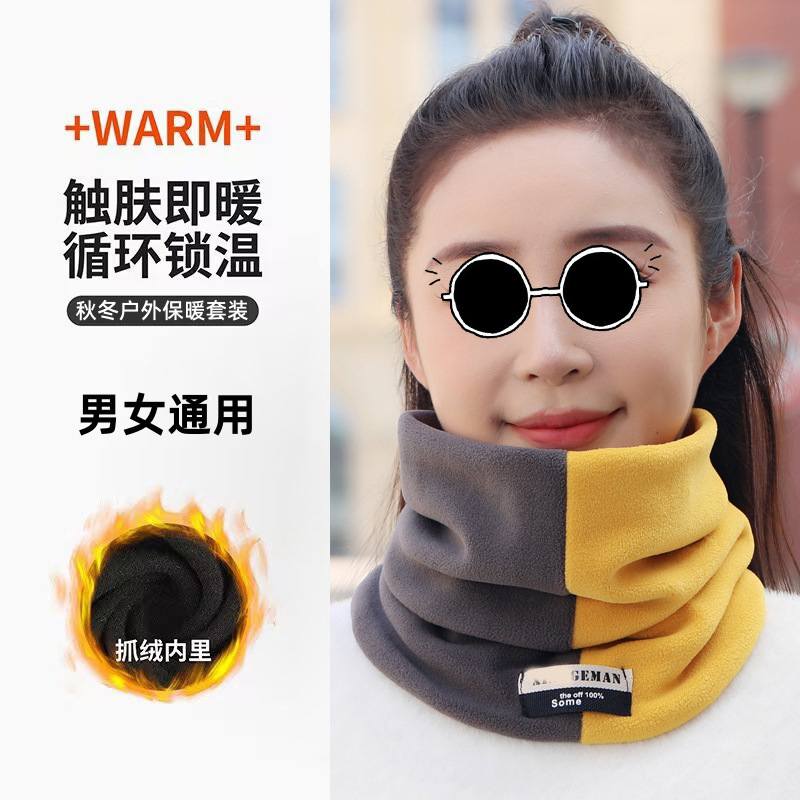 秋冬ニット二重襟マスク保温ベルベット防風騎乗着セット首カバー男女同金