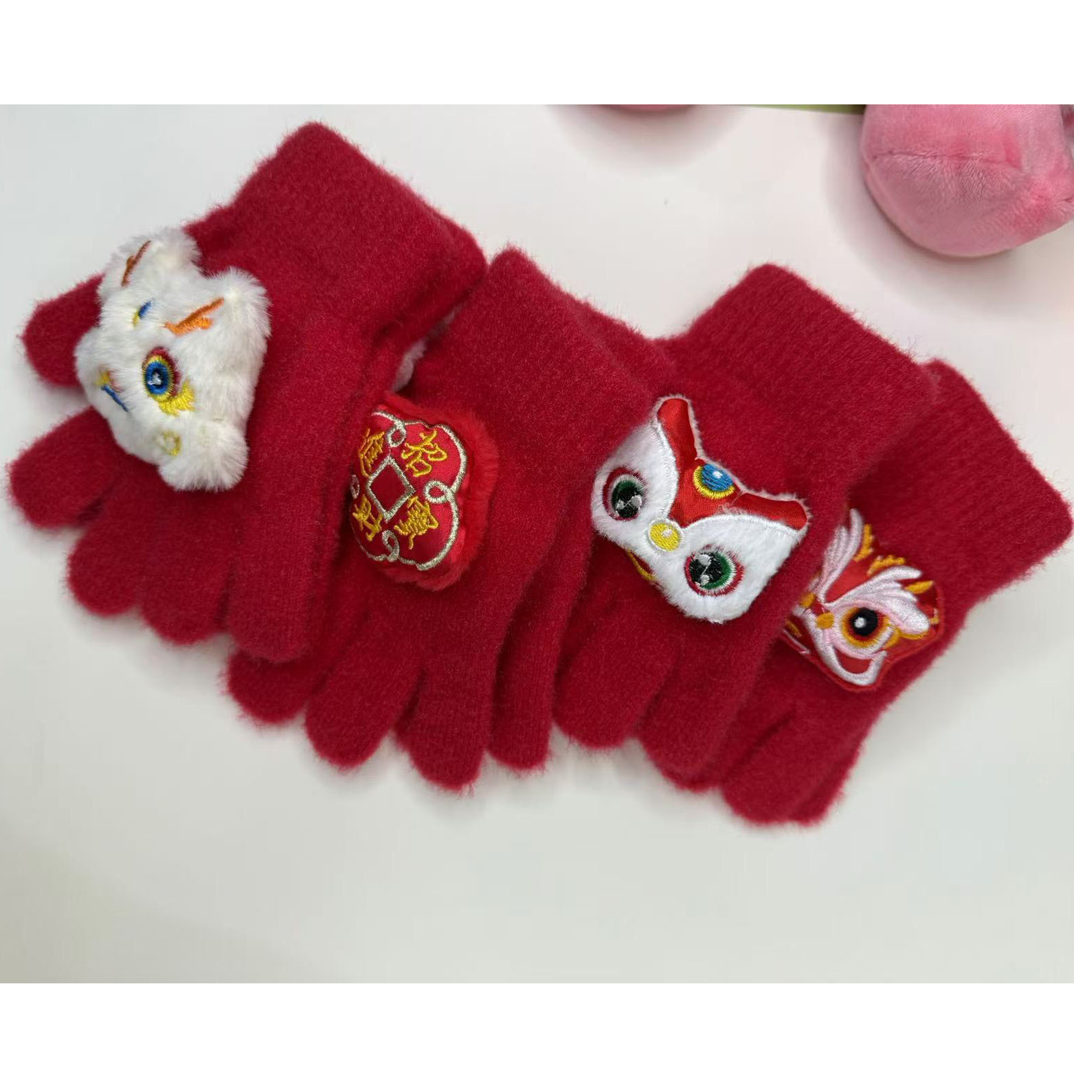 中国の赤い子供用ニット手袋、冬用厚手防寒暖かい新年のお祝い蛇年男の子女の子用ベビー手袋