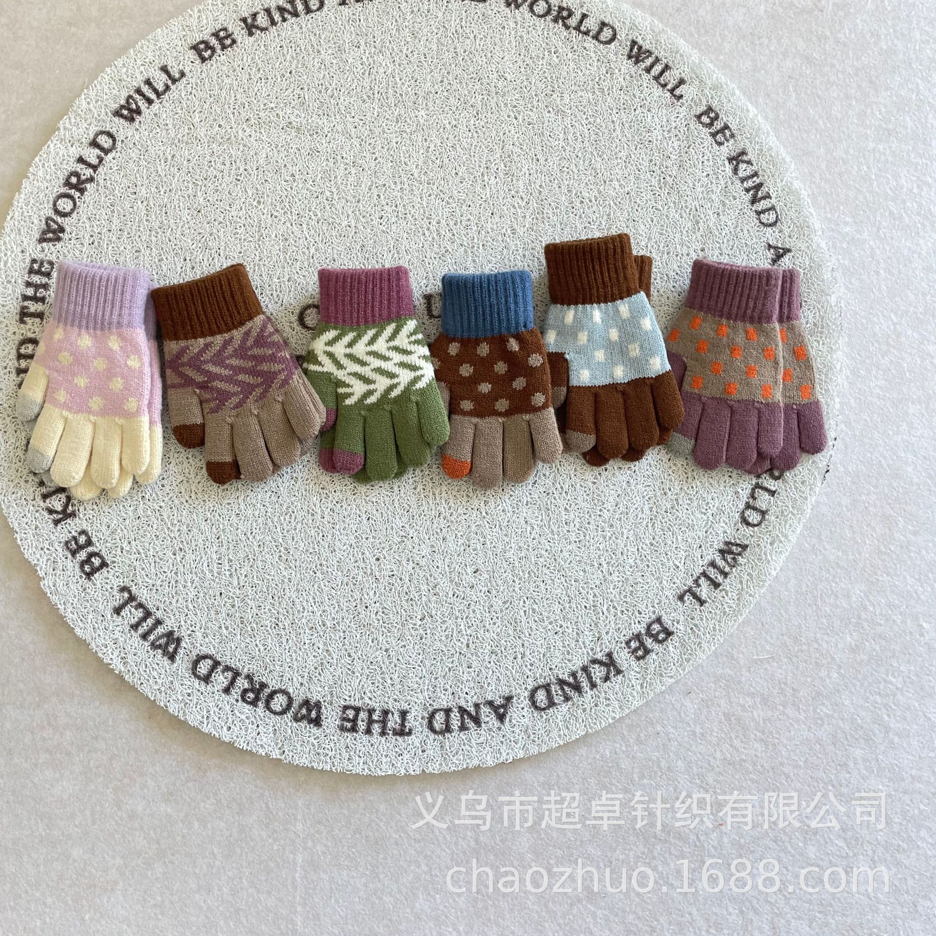 子供用手袋五本指冬保温毛糸ニット中子供男の子男の子男の子女の子小学生冬分指薄い