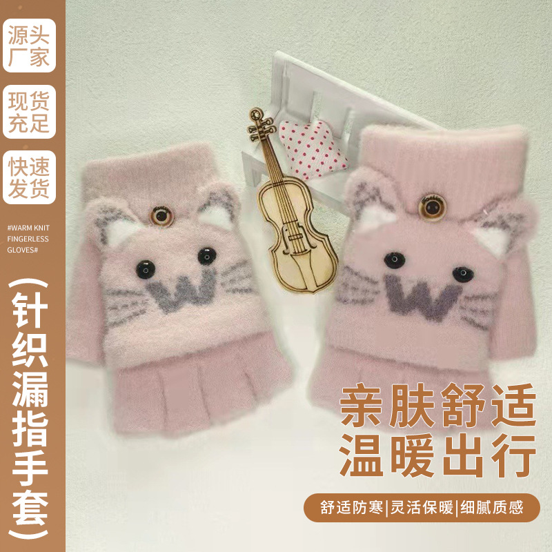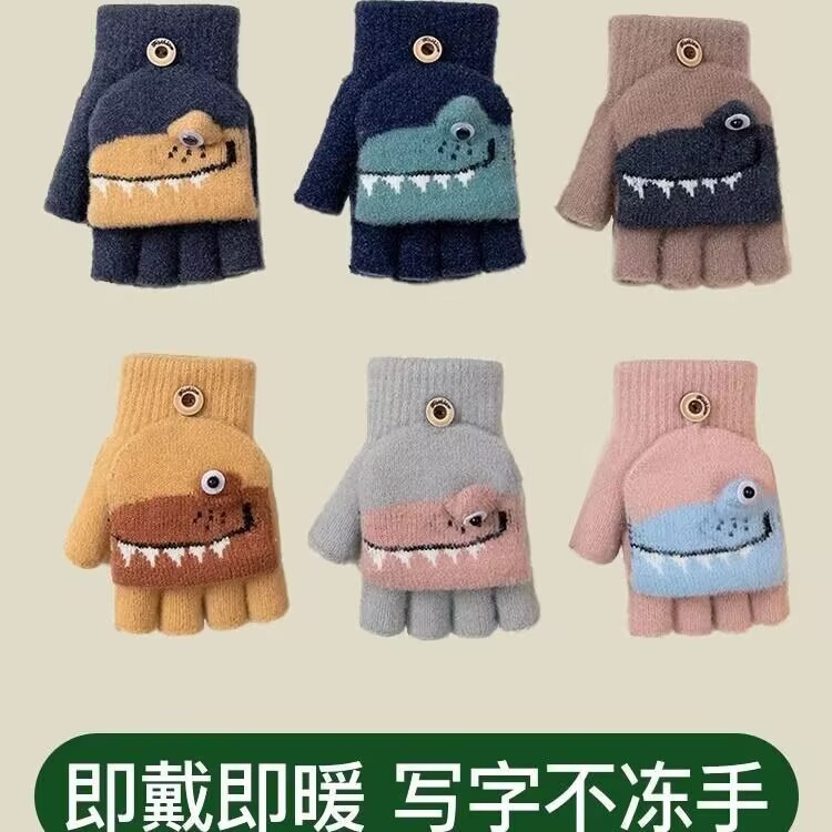 新型冬保温子供冬防寒かわいい赤ちゃん五本指男女通気性アニメ半本指カバー手袋