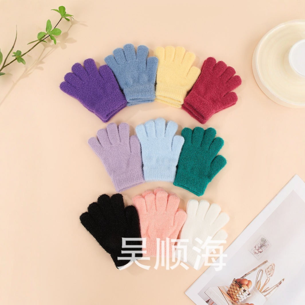シンプルなキャンディー色の子供手袋とベルベットの保温五本指手袋は冬に保温子供手袋のロットを厚くする