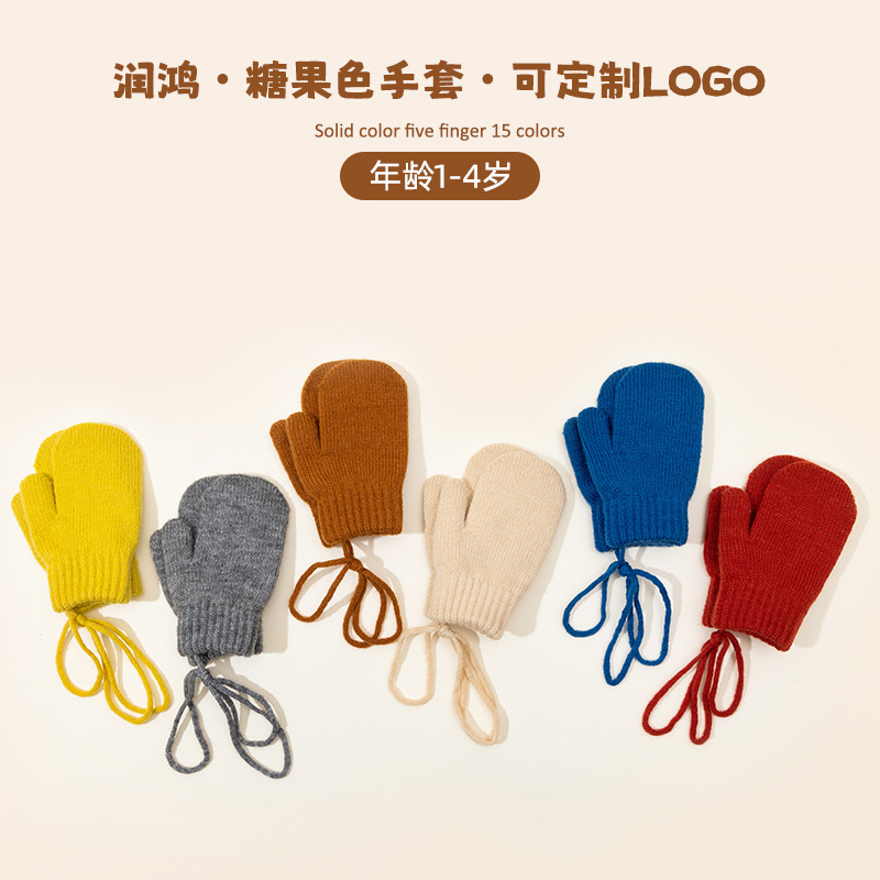 ソリッドカラーニット防寒ミトンホルターバッグカバー男の子と女の子の赤ちゃん雪遊び 1-4 冬子供暖かい手袋