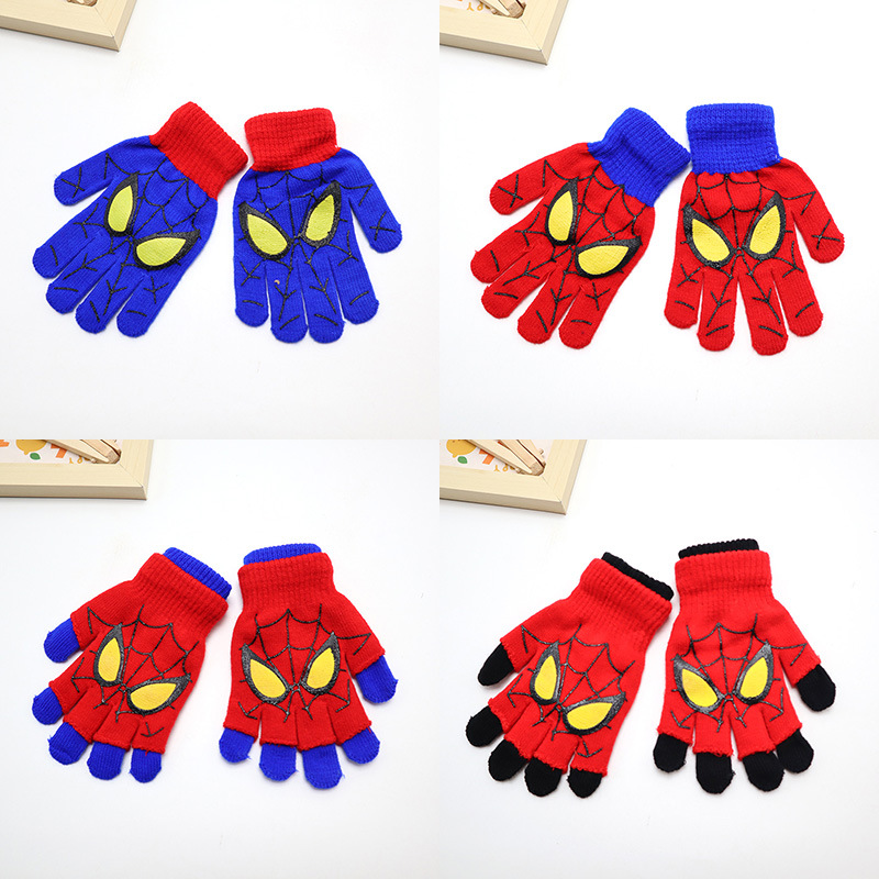 スパイダーマン手袋男の子冬プリント漫画暖かい指男の子 5 本指屋外ハンドガードアニメ手袋