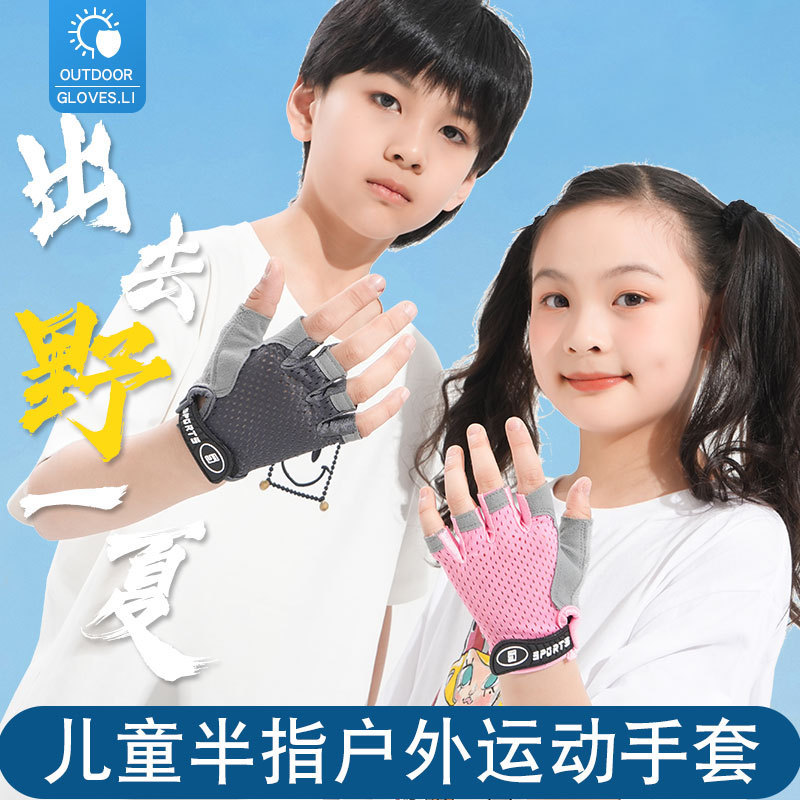子供用の薄いタイプの半分の指の滑り止めの鉄棒は手袋に乗ります。