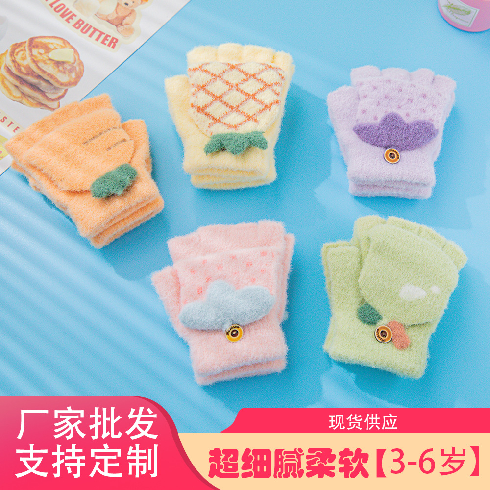 子供用アニメカバー手袋冬の半分の指は男女の赤ちゃん手袋を厚くして字を書く防風保温五本の指カバー