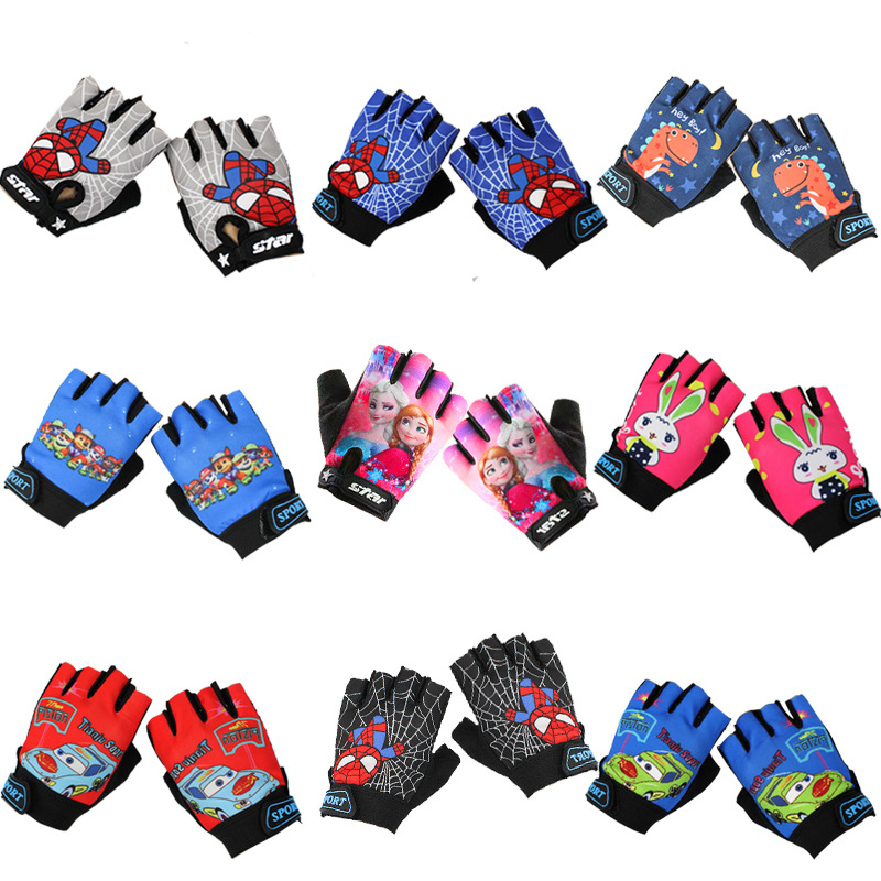 子供の手袋の半分の指の屋外の運動のバランスの車の子供の手袋の輪は滑って漫画の半分の指の手袋の女性の卸売りに乗ります。