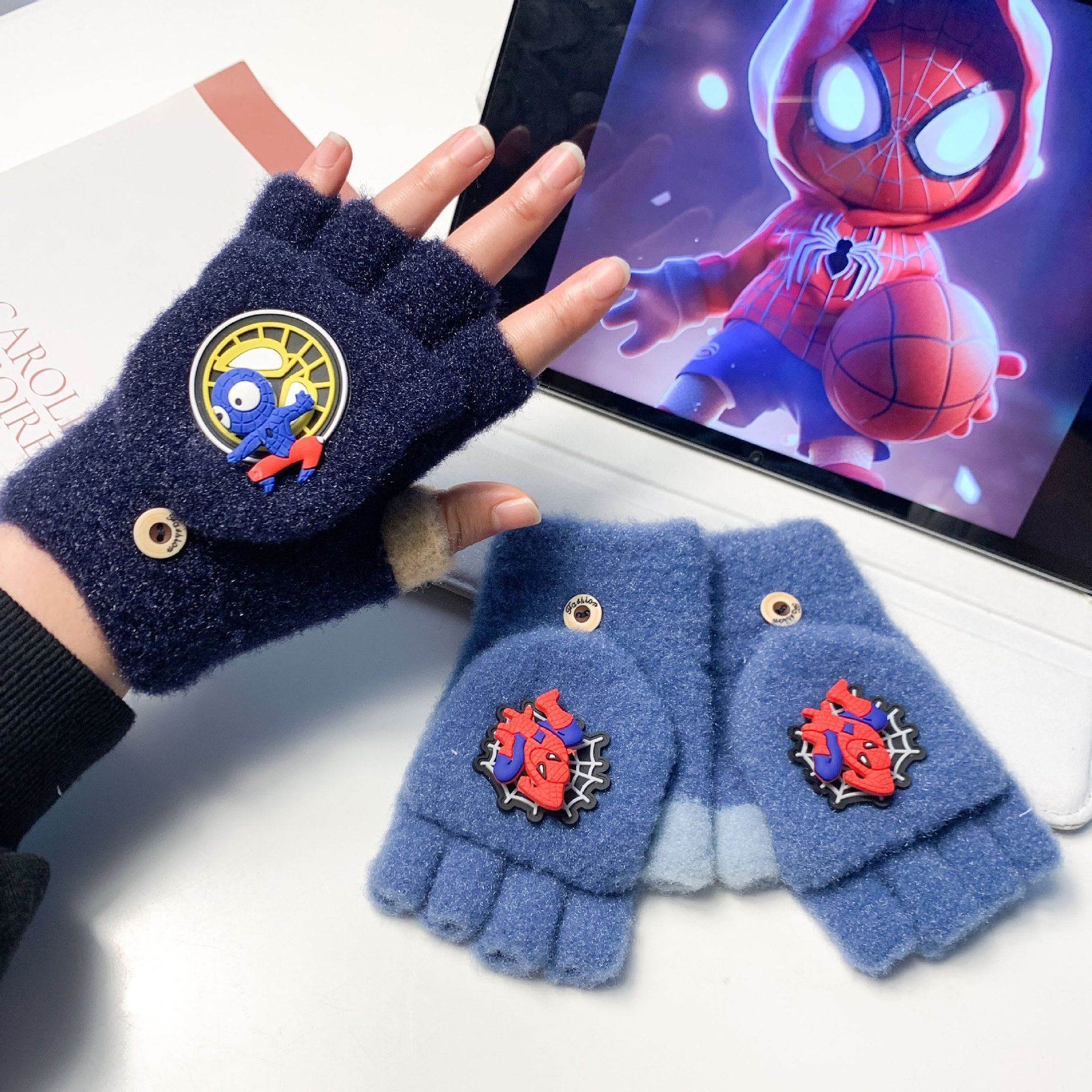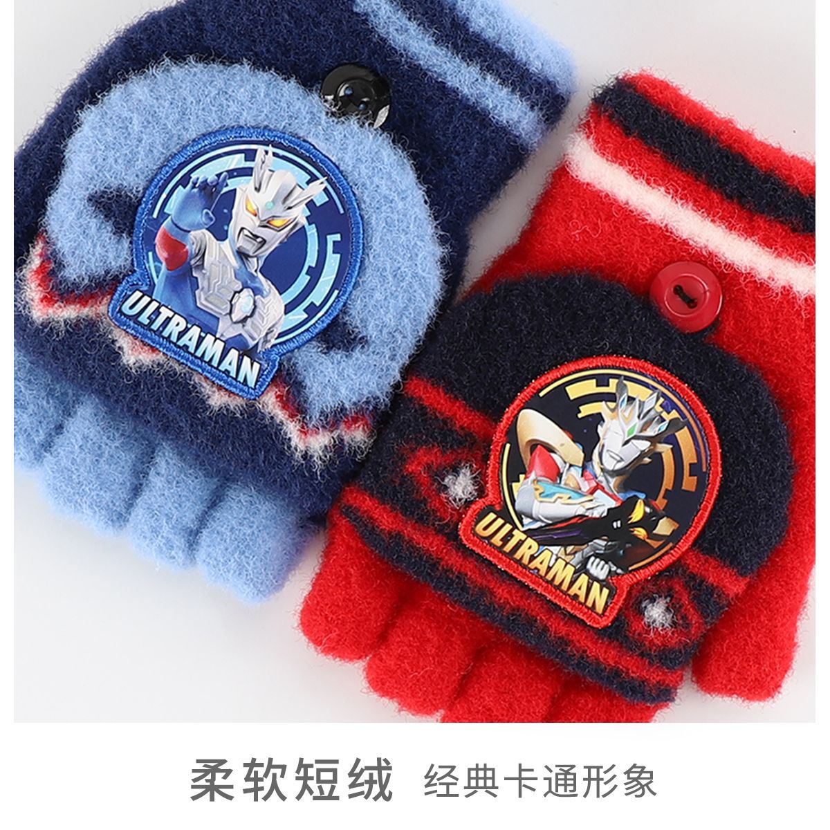 ウルトラマン子供ニット手袋秋冬保温男の子半指カバー毛糸手袋赤ちゃん学生手袋