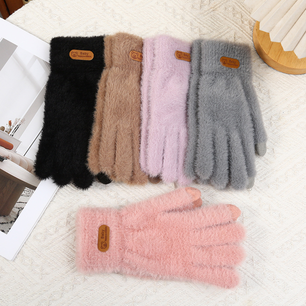 ぬいぐるみ風クロスボーダー貿易用タッチスクリーン対応手袋、保温性のある裏起毛ニット手袋、アウトドアサイクリング用ミンクベルベット手袋卸売