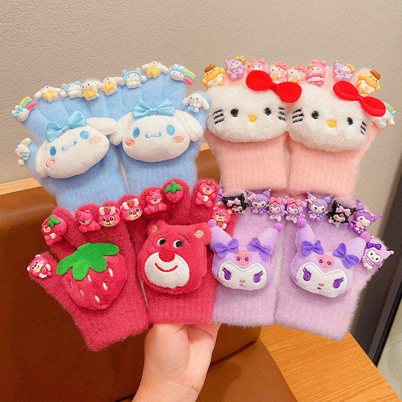 子供のサンリオクロミ玉桂犬手袋冬保温子供手袋五本指カバー手袋