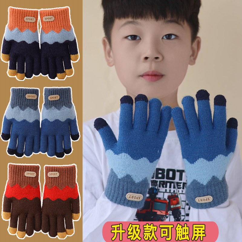 色合わせ保温ニット子供かわいいアニメ手袋屋外自転車五本指学生手袋防寒ロゴ