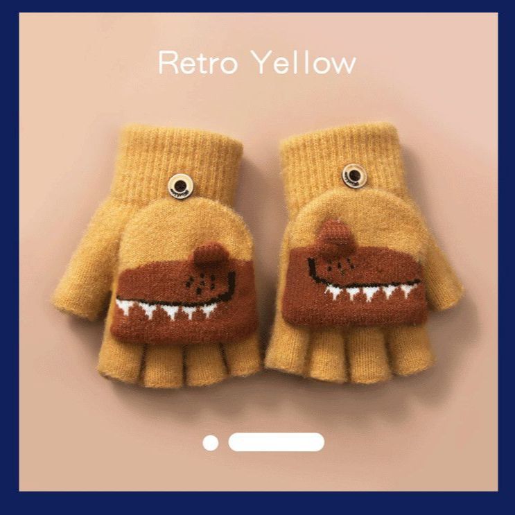 毛糸ニット手袋男女半指かわいいアニメが厚くて暖かい秋冬韓版学生防寒冬