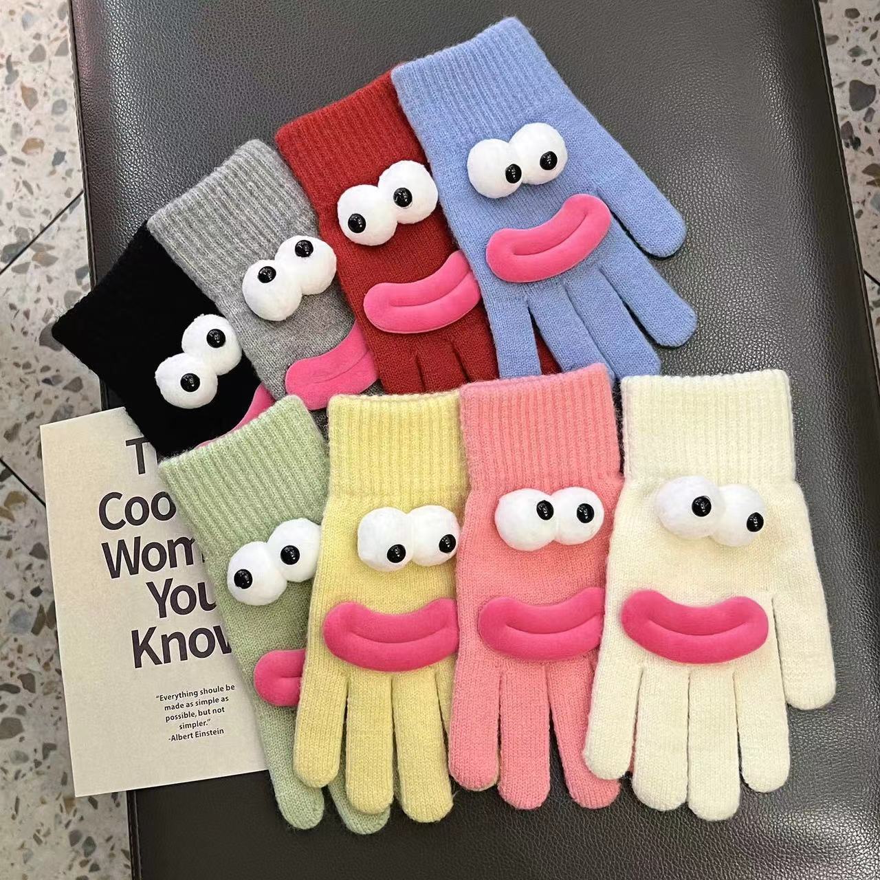 手袋の女性の冬の2024の新型のかわいいのは醜い萌えの保温とベルベットのニットの手袋をして冬の防寒に乗ります。