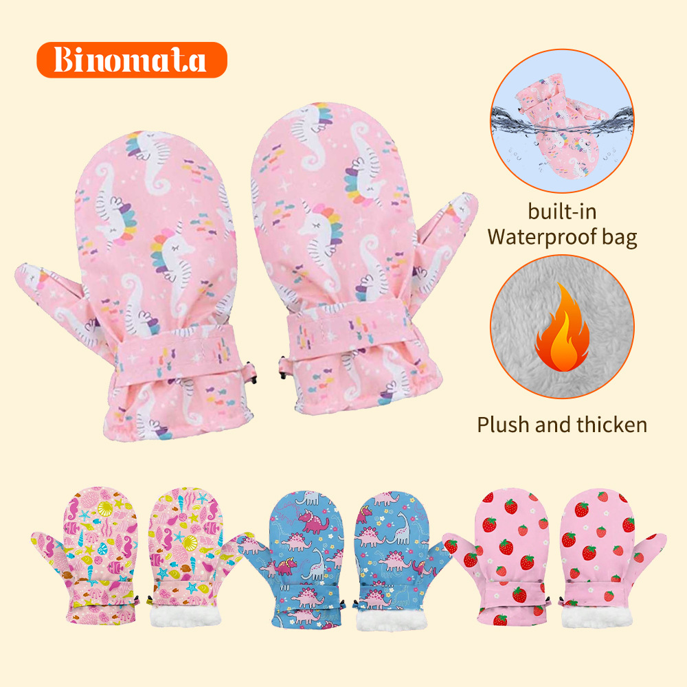 小恐竜子供保温手袋屋外子供幼稚園子供夜光防水防寒手袋卸売り