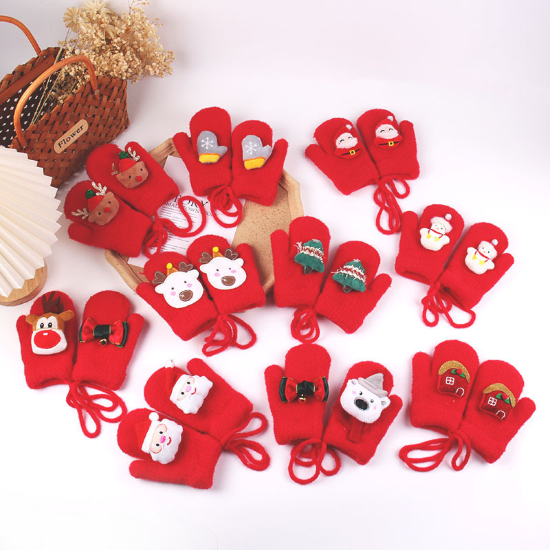 子供のクリスマスの赤い手袋秋の冬にベルベットが厚くて暖かい男女のかわいいバッグカバーのニットの首の手袋