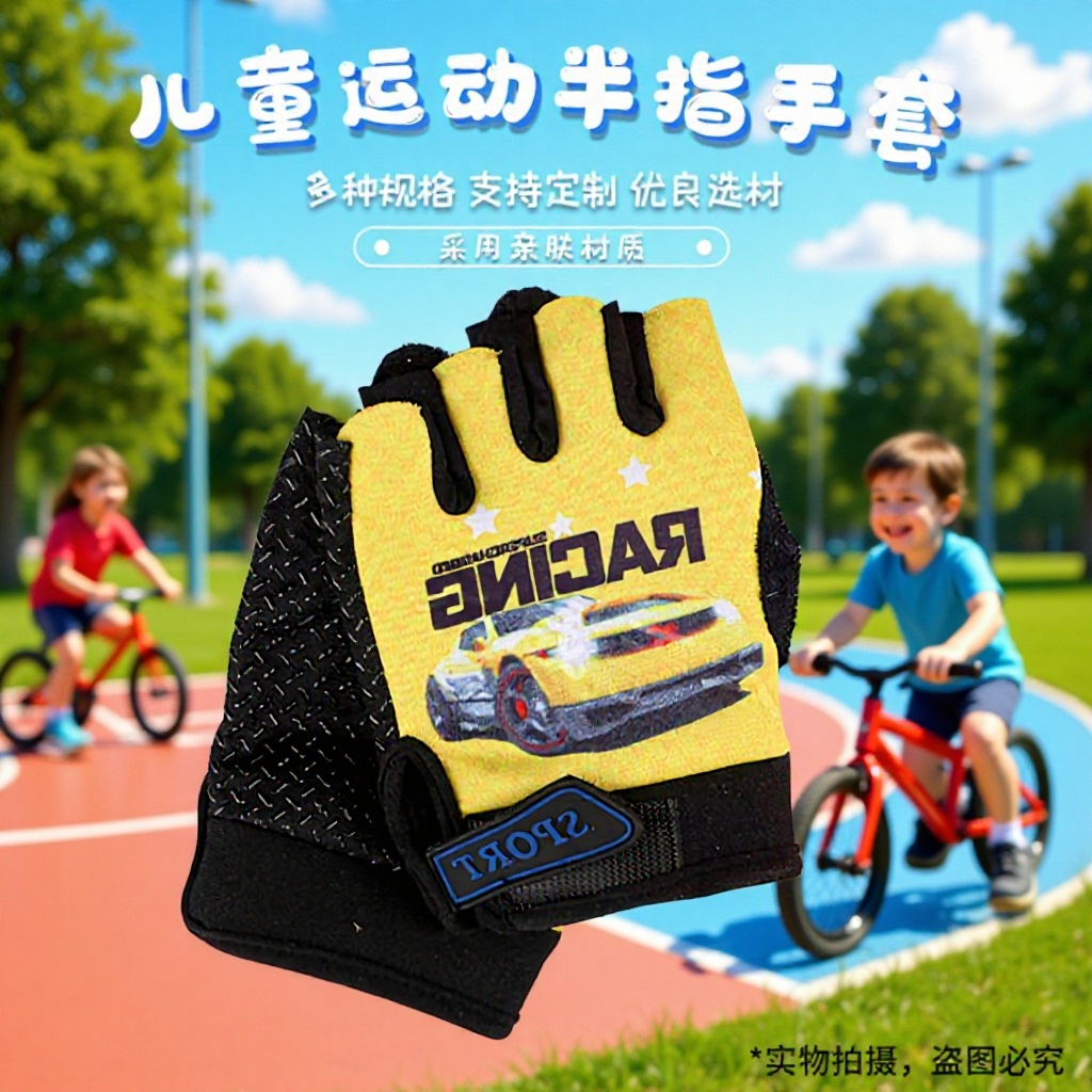 子供用手袋 アウトドアスポーツ ハーフフィンガー 滑り止め 通気性 戦術保護 サイクリング バランスバイク 漫画柄 子供用