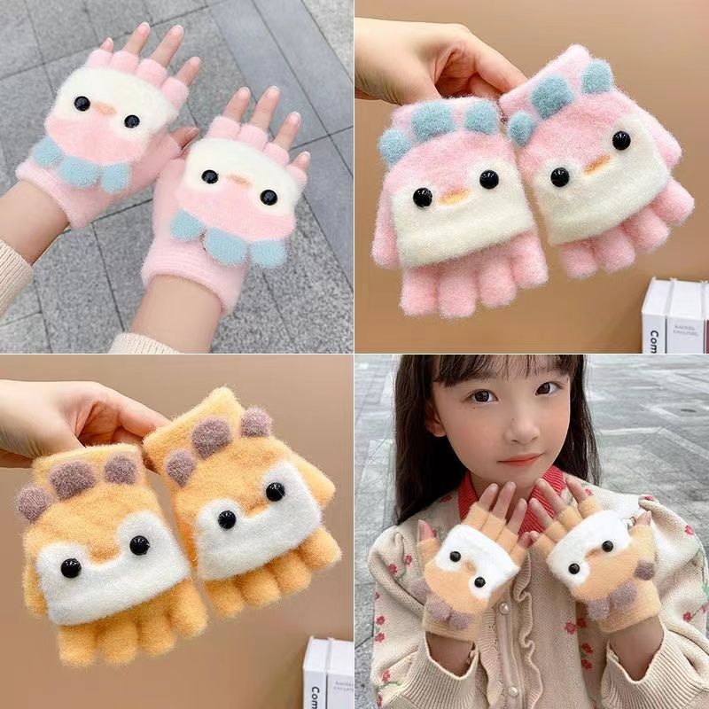 子供用手袋冬可爱い防寒手袋学生书き字半分指男の子女の子子供保温カバー手袋