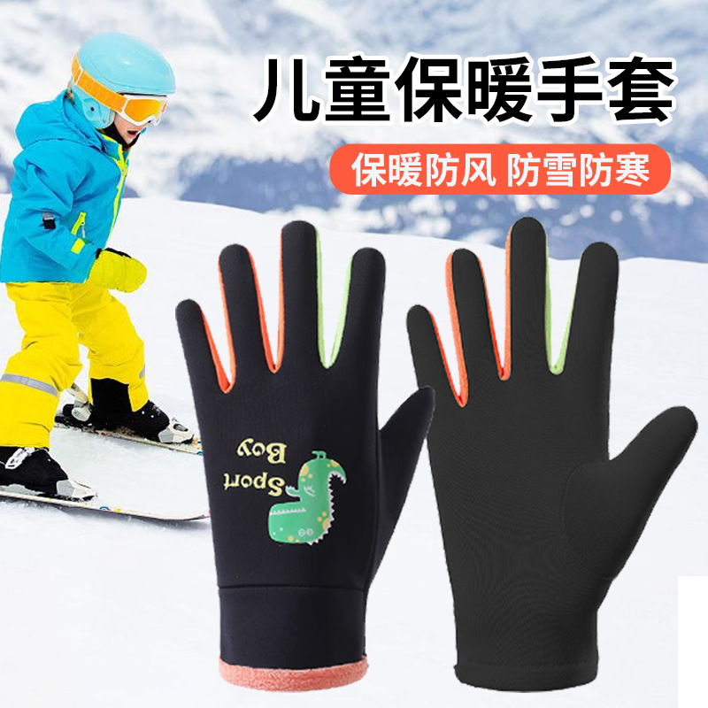 中童五指スキー手袋冬防寒学生自転車防風滑り止めベルベット厚手保温児童手袋