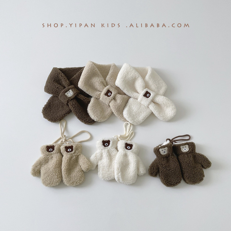 秋南韓国子供手袋冬ins漫画熊男の子女の子指掛け首ぬいぐるみ卸売り