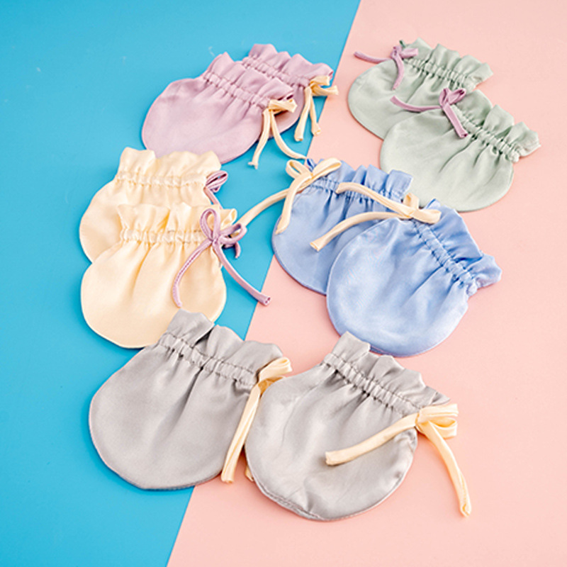 桑絹糸ベビー手袋は顔をつかんで手を包む新生児の夏の薄いタイプの通気性を防ぎます。