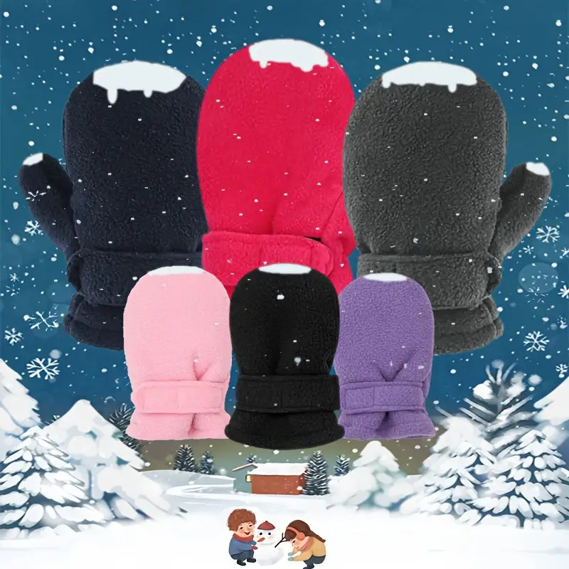 秋冬用幼児用ポーラーフリース手袋、子供用裏起毛防風手袋、調節可能なフルフィンガーグローブ