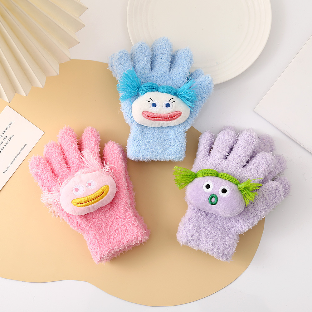 ins风卡通大嘴搞怪儿童保暖手套可爱秋冬分指女孩宝宝五指手套批