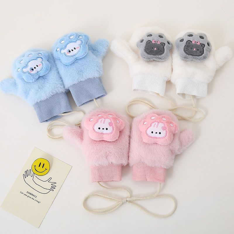 韓国の子供手袋秋の冬の赤ちゃんの熊の男の子と子供のベルベットの保温女の子の首と指のハンドバッグがかわいいです
