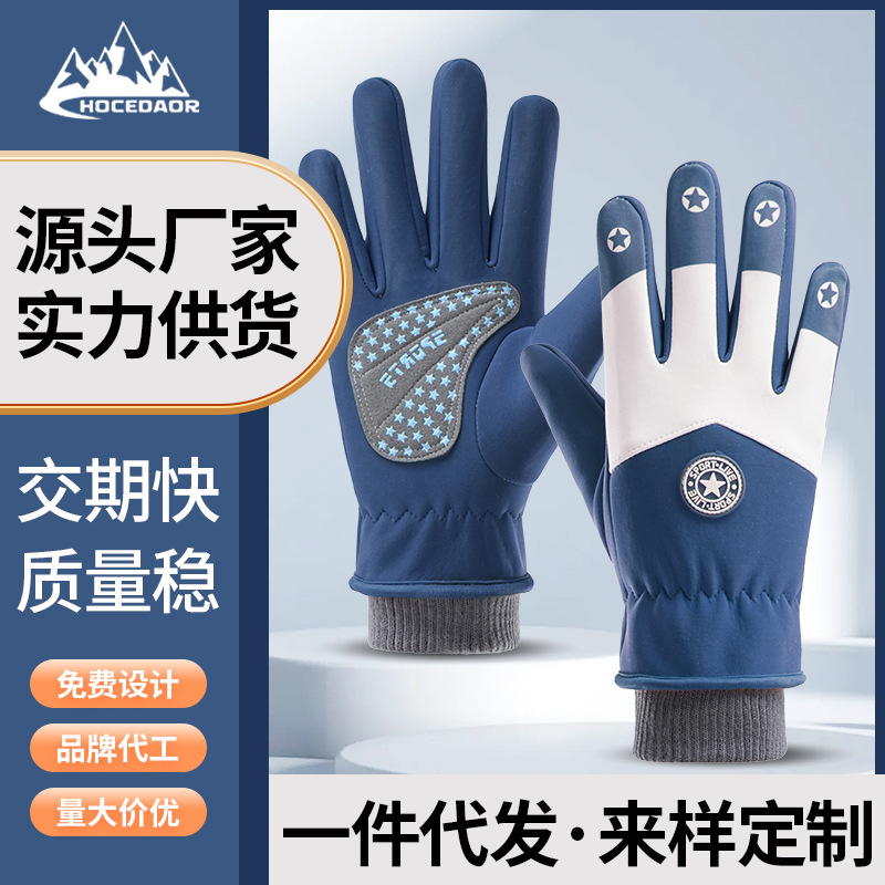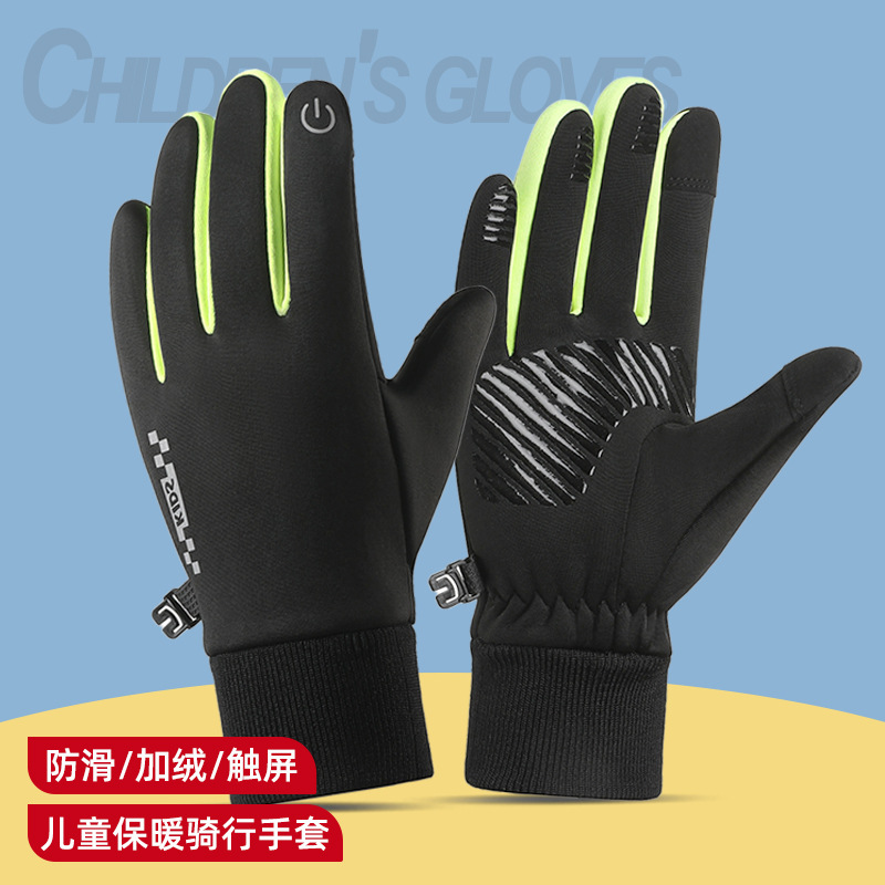 新型冬児童手袋ベルベット保温防風防寒タッチパネル自転車滑り止め防水戸外男女児童