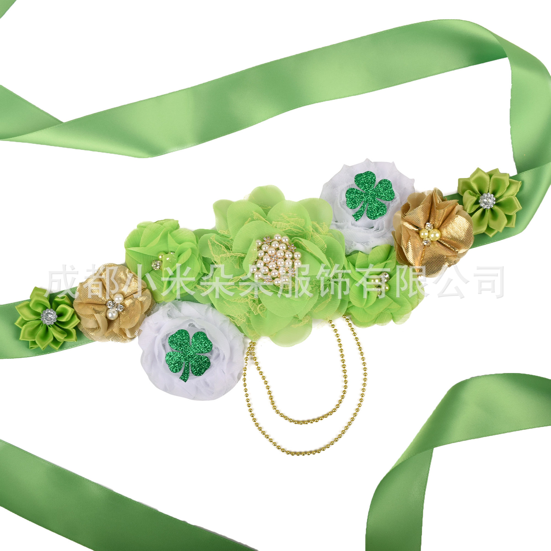 アイルランドの聖パトリックの日の妊婦の写真のベルトのシフォンの花の腰は欧米の対外貿易の越境を密封します。