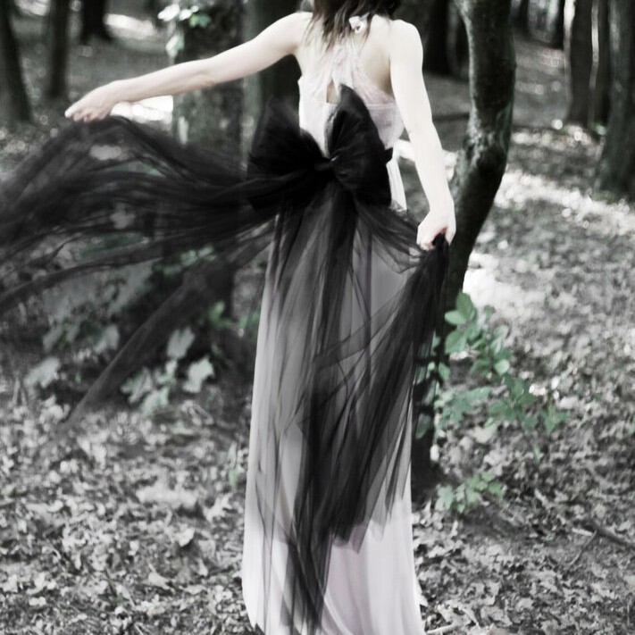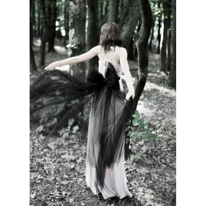 ハロウィンの鬼の花嫁のウェディングドレスの蝶結びは舞台のショーの服を飾って、漂っているショーの服を配合して写真を撮ります。