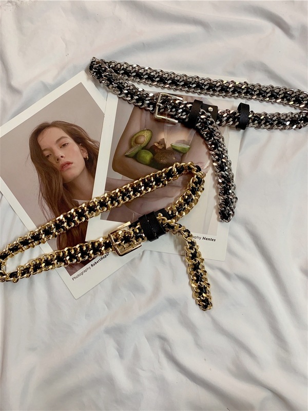 2021新型高級感チェーンベルト女性レトロ美人頭飾りワンピースウエスト編みウエストチェーン潮
