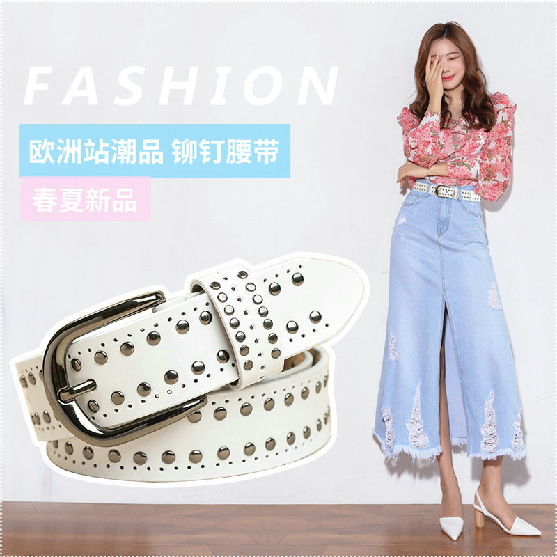 オーダーメードのベルトの女性の白いジーパンの女性のズボンのファッションの個性のリベットのベルトは純粋な牛革を飾ります。