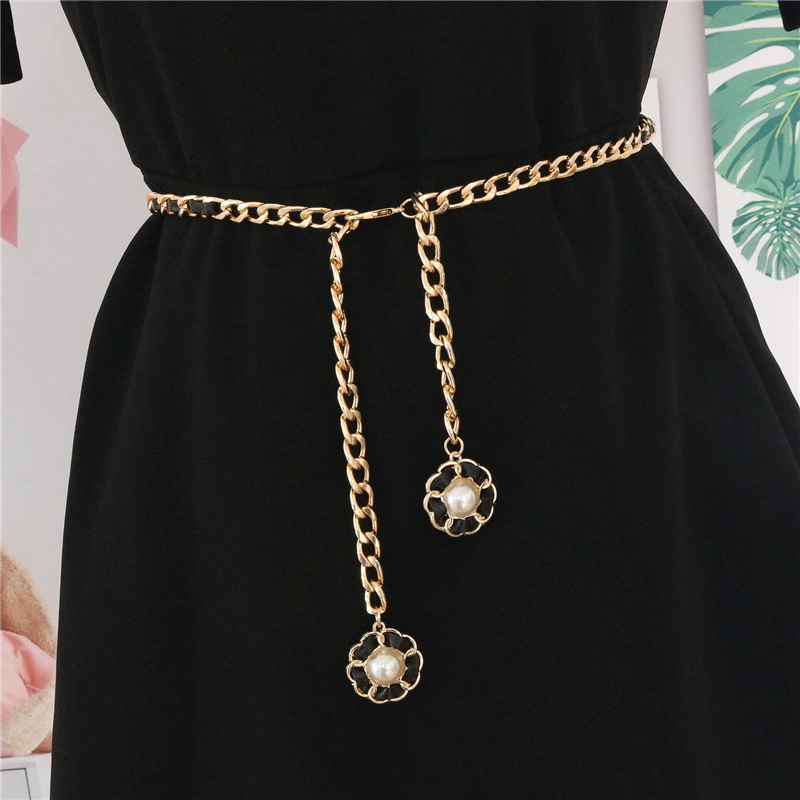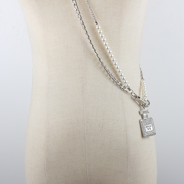 新型の真珠の細い腰のチェーンはスカートを配合して腰を収めてスーツのファッションを飾ります。