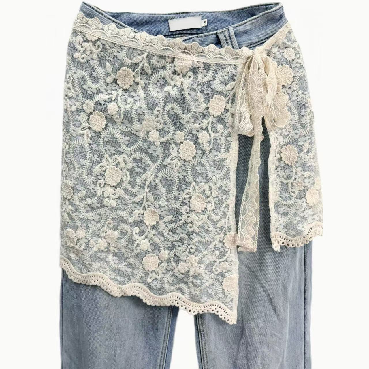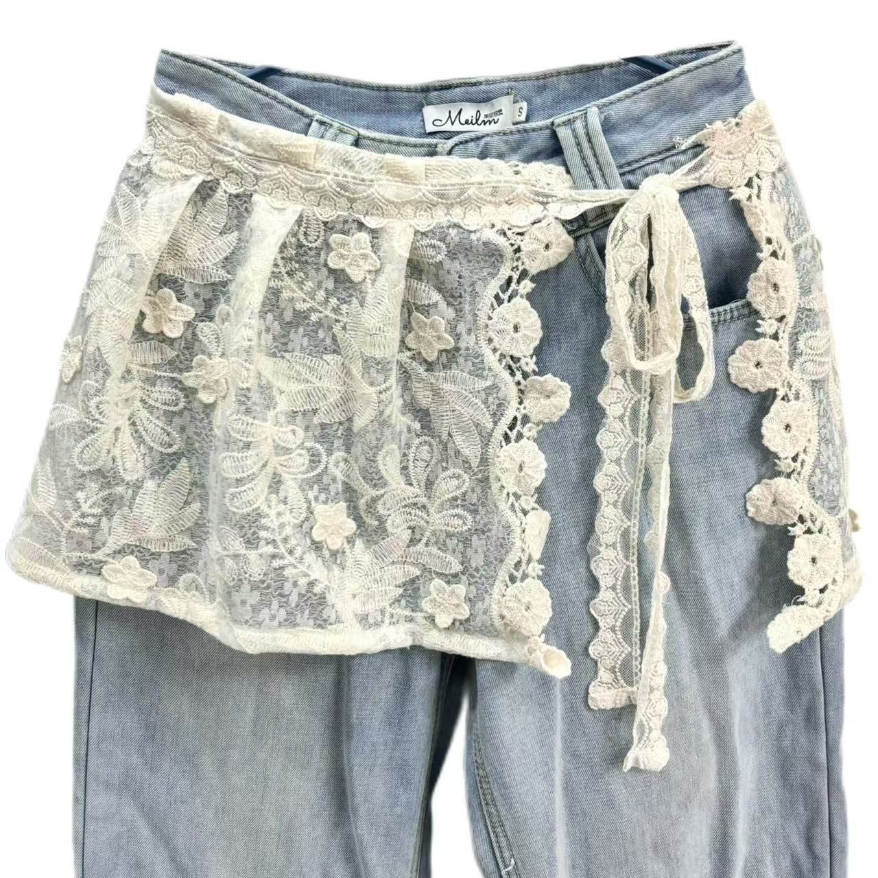 春夏バレエ風~レースカーテンレースレイヤードアーティファクト高級レースアップチュチュスカートダンスカジュアルジーンズスカート