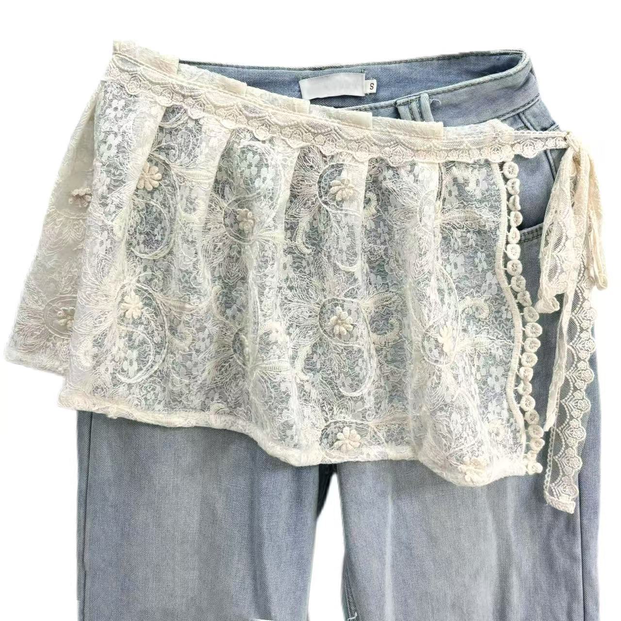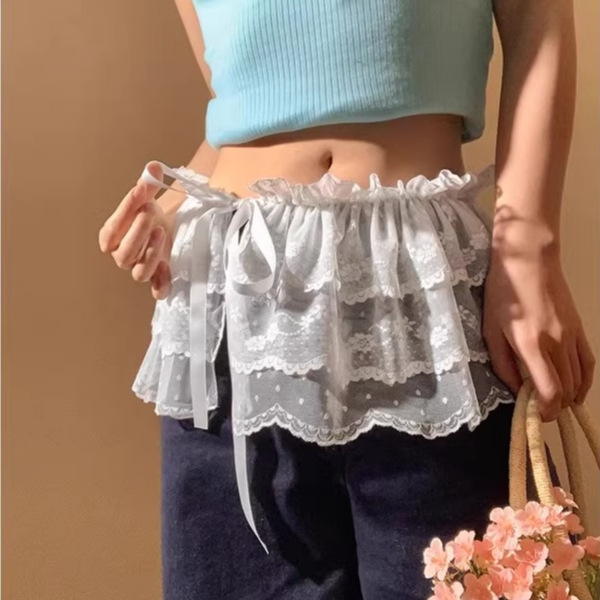 韓国インスタイル多用途ファッションレイヤードソフトニッチレーススカートバットカーテンスカート小さなエプロンレースウエストアクセサリー