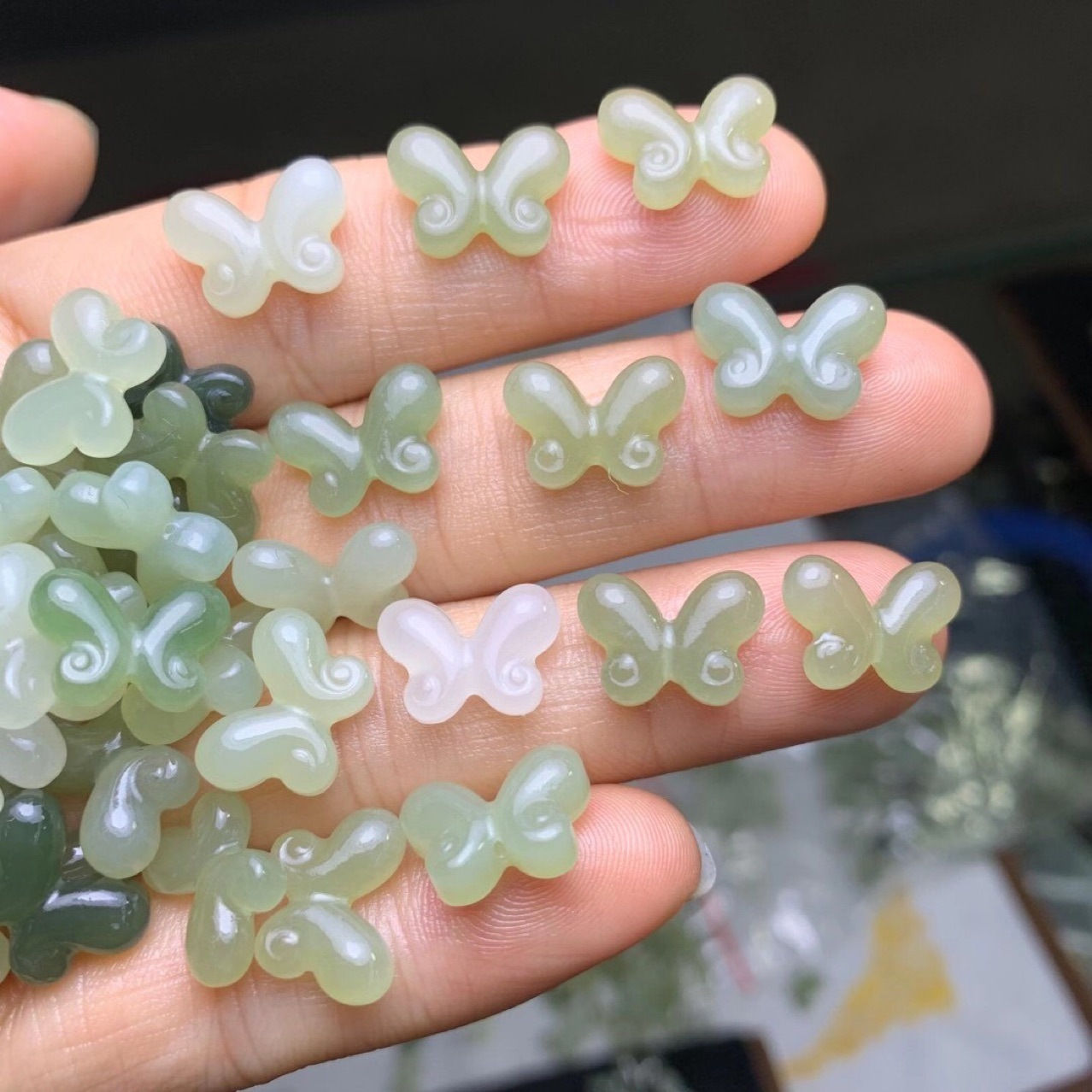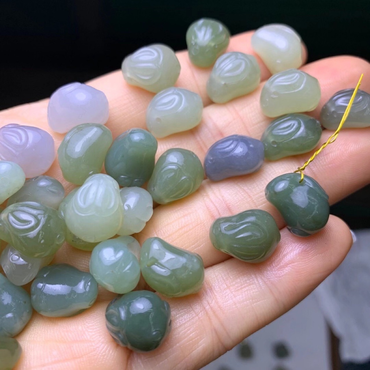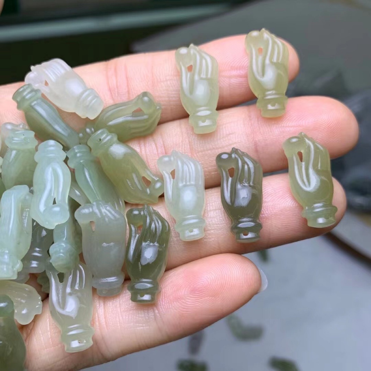 和田玉青海晴水材料彫刻仏手のパームトップビーズのブレスレットのネックレスのペンダントのイヤリングdiyの部品