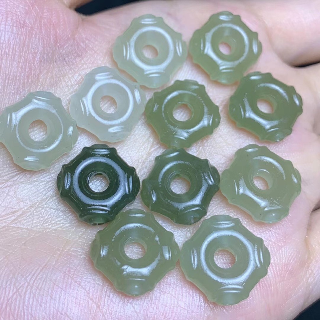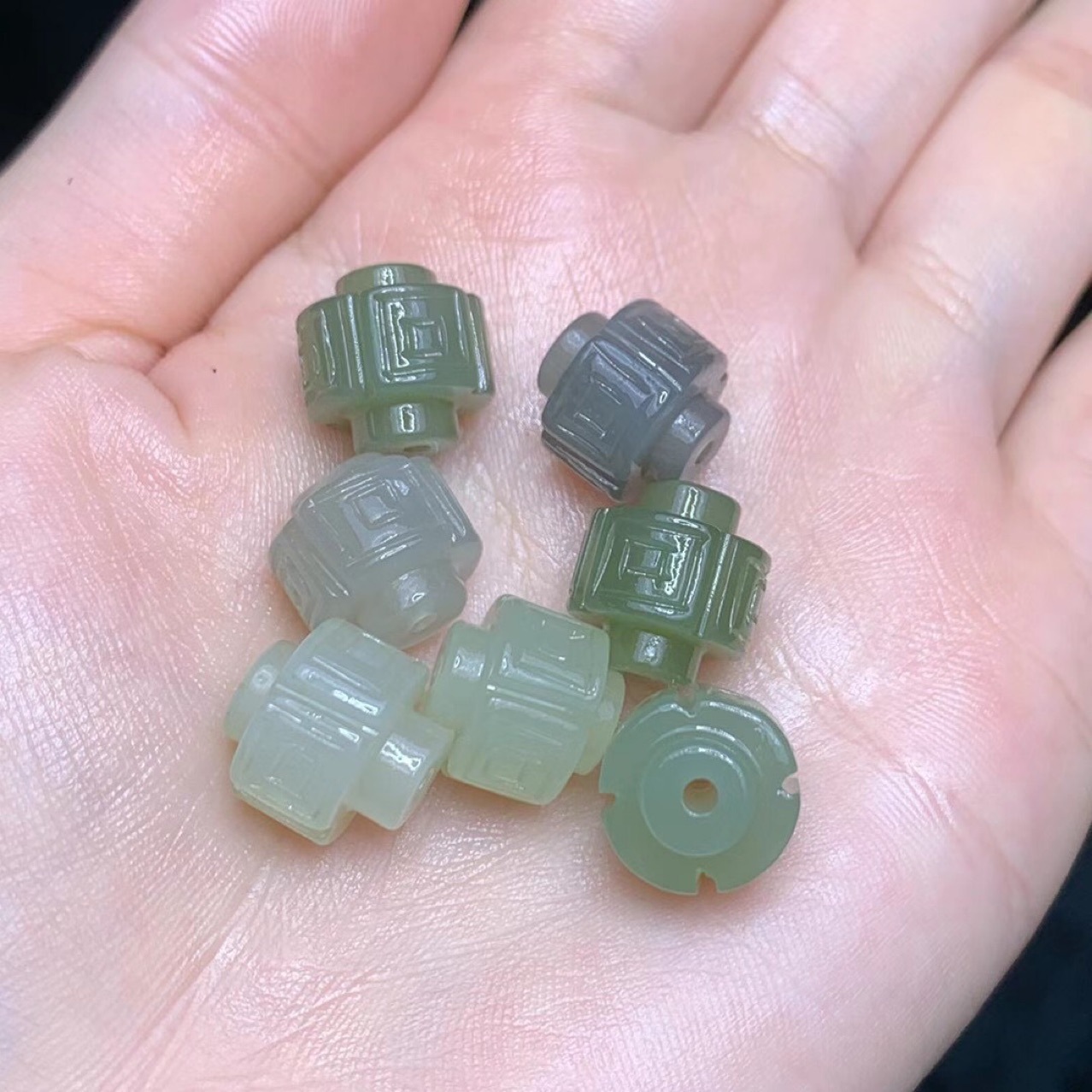 和田玉青海材料彫刻四方八方通孔文遊び部品diyアクセサリー晴水緑