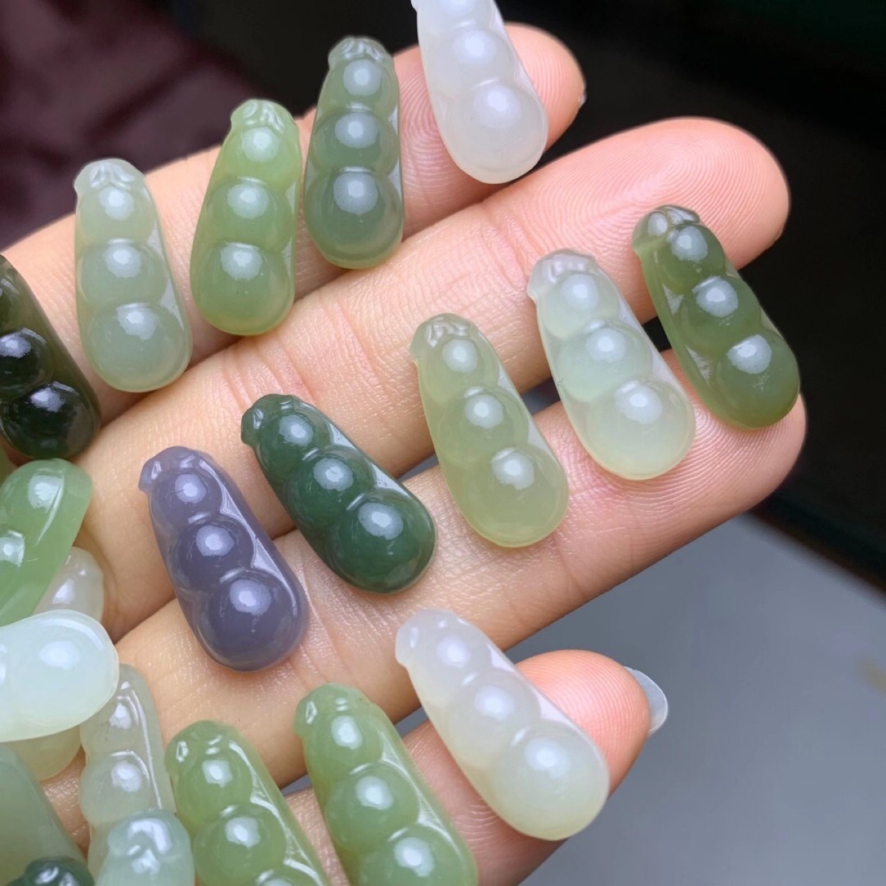 和田玉青海材料彫刻四季福豆ネックレスペンダント