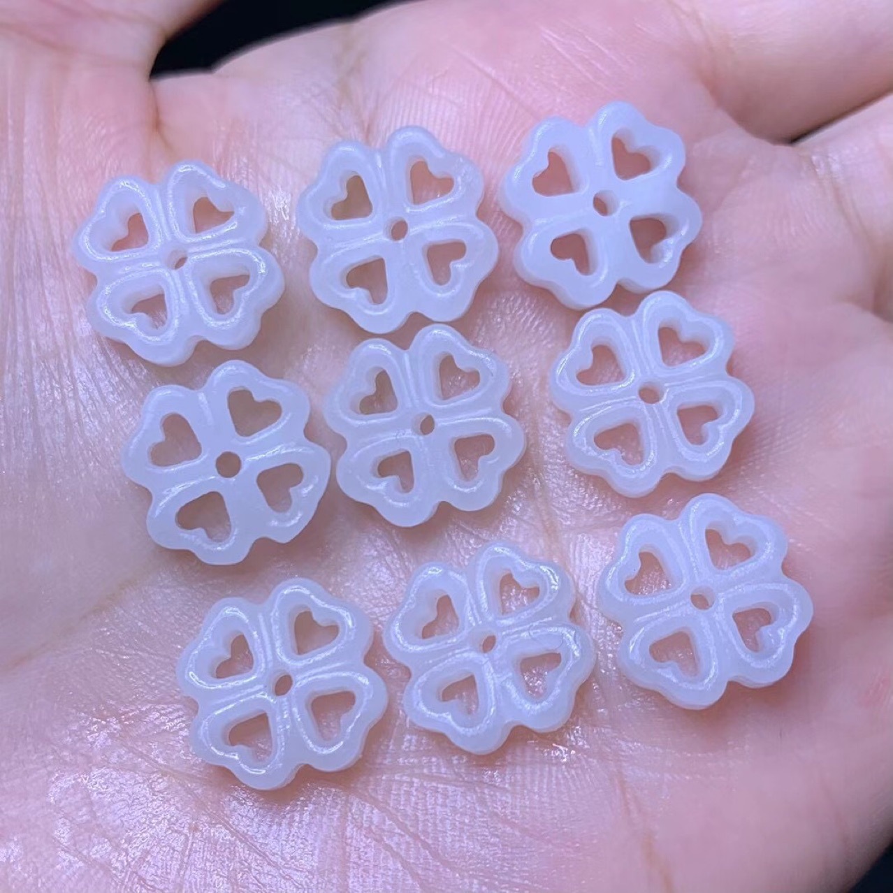 和田白玉彫刻四葉草直通穴文遊びdiyアクセサリーネックレス手作りイヤリングアクセサリー