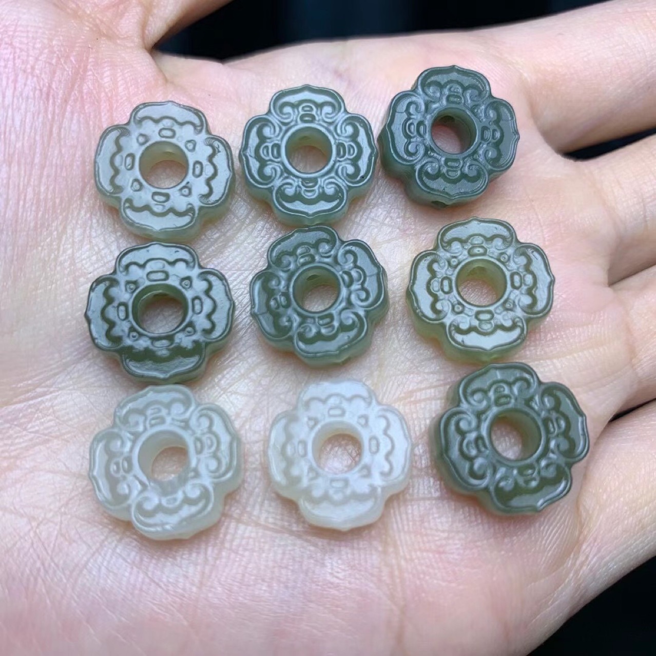 和田玉青海材料彫刻背雲直通孔文遊び部品ネックレスブレスレットペンダント編み縄diyアクセサリー