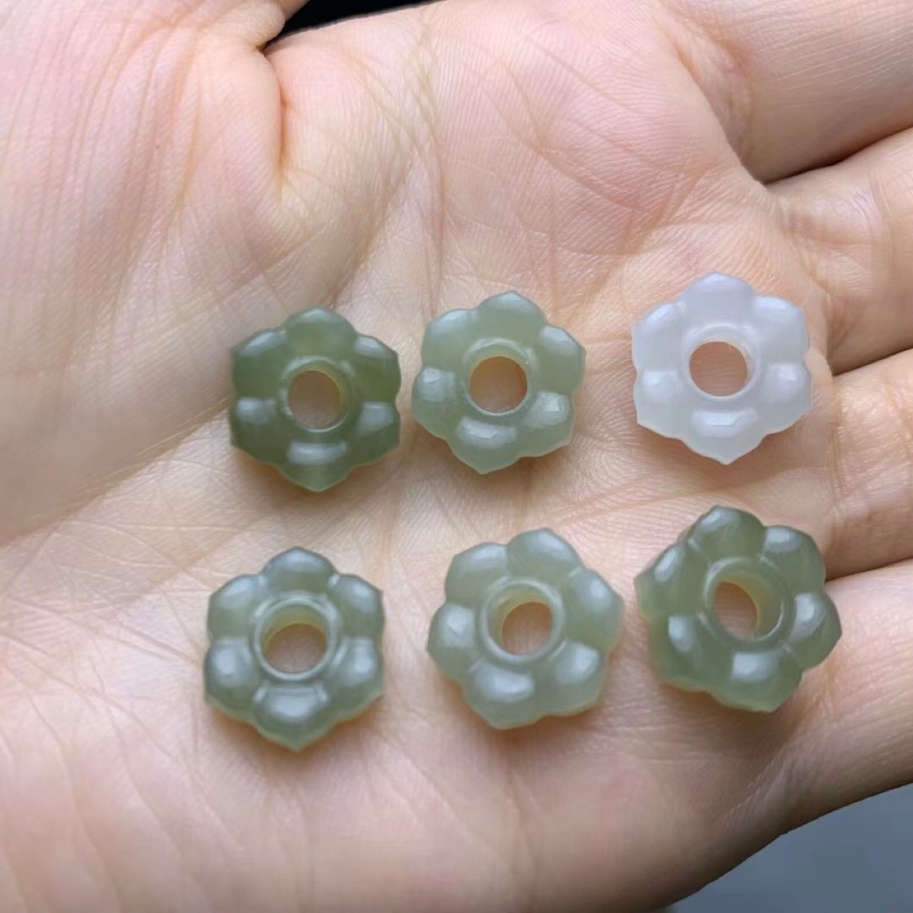 和田玉青海材料彫刻六弁花中空文はDIY部品のブレスレットのイヤリングを飾って手編みをします。