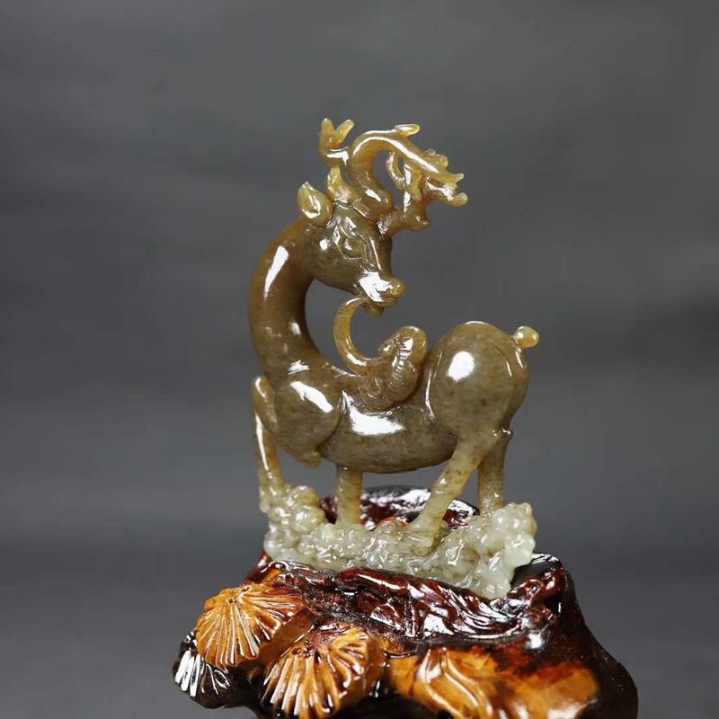 和田玉工場店玉工芸品天然新疆和田玉種子材料原皮原色龍馬精神置物