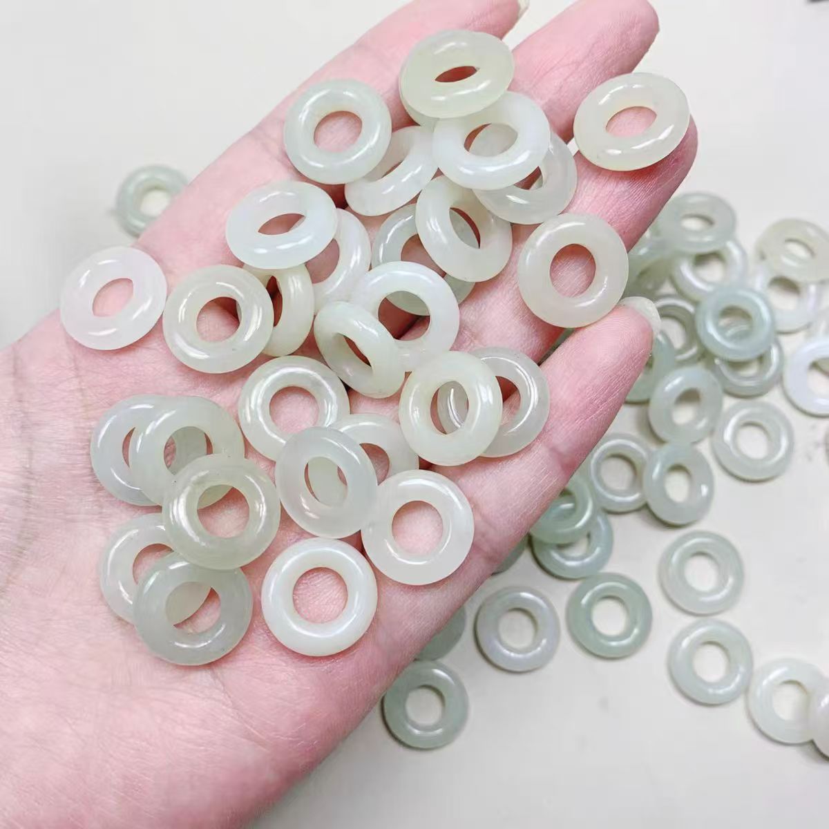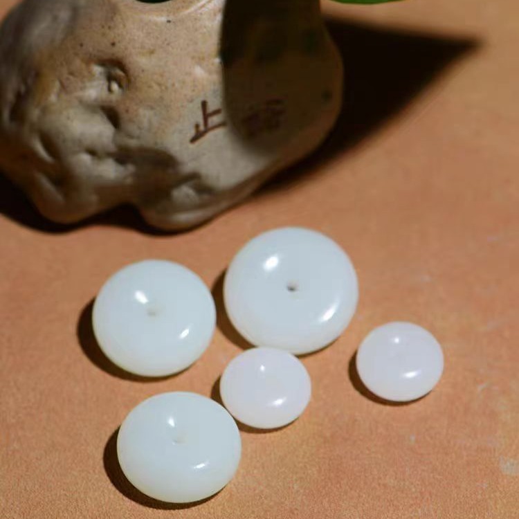 天然和田玉材料部品ドーナツ穴玉DIYアクセサリー仏珠手串玉ペンダント卸売り