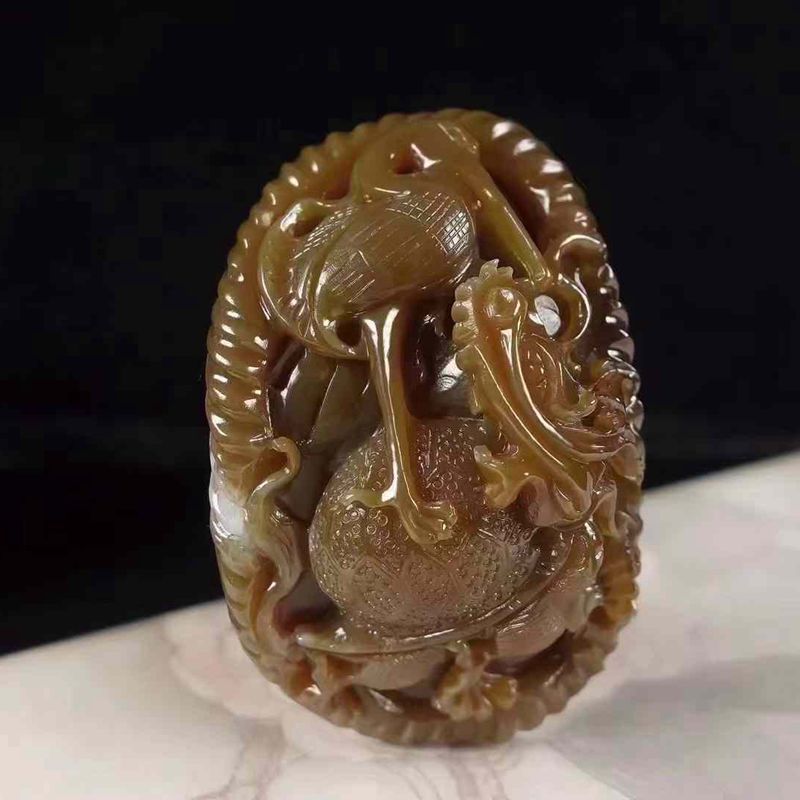 天然青海材料和田玉提灯彫刻件通孔玉手串diy部品提灯ペンダント繊細