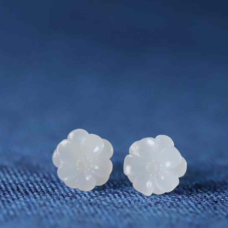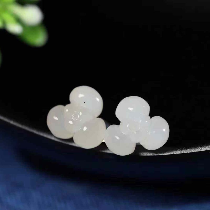 和田玉工場店玉工芸品天然新疆和田玉羊脂級白玉女史小花ピアス